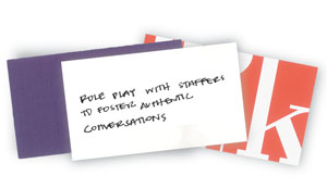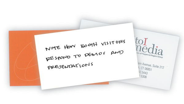 Finally, communicate with staffers the incredible power they have to help the company. "It's a mental shift for typical staffers," MacLean says. "But they need to view themselves as scribes, as recorders of all things valuable, as documenters of every element of the booth. And they need to understand not only how this information will be used after the show, but the incredible value it holds for the company. When people see themselves as critical parts of a process, they're more likely to buy in."