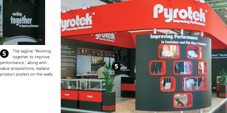 It took Young about 18 months to get up to speed with Pyrotek's products, which were divided into four divisions; its locations, which were spread across Asia, Europe, the Middle East, and North and South America; and its business practices, which he realized were costing the company an enormous amount of money. "We have everything from annual shows to quadrennial shows, and depending on the year, we can have 20 shows going on at one time in different regions," Young says. "It took me a year and a half to really see what was going on, and when I realized how it all worked I said, 'We've got to do something to bring this together.'" Reinventing an Image Creating a company-wide template for exhibit properties and logos and shooting it off to offices around the world may sound like a simple matter, but Young knew that merely issuing such an edict was not the way to stitch a fragmented company together. There were regional differences to consider, and egos. "I didn't want to come in like I was taking their decision-making authority away," Young says, noting that while the time spent designing exhibits was a burden, the responsibility it conveyed was a source of pride. "I wanted to help them understand how a unified approach would benefit them in the end."Young knew his vision wasn't going to happen quickly. It had taken years to create the problem, and it was going to take more than a few emails to fix it. In fact, Young wasn't going to rely on email at all. "You can't get things like corporate change done in an email," he says. "You need to sit across the table from someone, or at least pick up the phone and talk to a person." Young began sketching out a plan for face time with all 10 of the company's major regional offices across the globe, eyeing when the next major show was for each and who was making the decisions about it. But there were a few things Young needed to do in the corporate office before he went on his globetrotting mission. Chief among them was creating a set of design principles to which the company's trade show presence should adhere. On the front line of that issue was the corporate graphic designer. "Our graphics person was instrumental in creating artwork for the displays, but she didn't have a trade show background," Young says. "I needed to partner with her for the branding concepts and convince her that using a template was better than continuing to make one-off designs." The skeletal branding concept Young formed included a few basic tenets: The word "Pyrotek" needed to consistently be in white against a red background and positioned as high as possible in the booth, and exhibit managers had to swear off what appeared to be a favorite look for many – indistinct white walls and a postage-stamp-type scattering of product graphics on the walls. Branding Buy-In In addition to having hundreds of phone calls and Skype conversations with international contacts in field offices, Young flew around the globe to talk with staffers about their programs. He realized early that there were many different exhibiting needs in the company, from 10-by-10-foot pop-up displays to 2,000-square-foot double-deck booths, and from exhibitions that showcased all of the company's divisions to ones that focused on just a few key products. There was not going to be a uniform solution for Pyrotek's international identity, but by the end of the journey there was going to be a look that identified each as part of the same company.