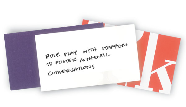 If your staffers are truly the recorders of all things that happen in the booth - your company's scribes, if you will - you need to train them as such. For the most part, booth staffers are used to being verbal communicators, not recorders. So bring the lead form to each staff-training meeting and talk through each question and the type and quality of answers you expect. Also discuss how these questions can be worked into a typical conversation. "And explain everything," MacLean says, "including how to time/date stamp the form, where to staple the business card, and how to introduce the form into a conversation."