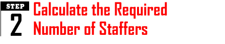 Next, divide the average number of booth visitors per hour by the number of attendees each staffer can speak with per hour based on your experience (in our case, seven). To establish a benchmark for this number, you can ask staffers to count the number of attendees they speak with during various one-hour intervals at your next show - and then determine their visitor-per-hour average. Or if almost all visitors are tracked via a lead-processing system, you can divide your leads by the number of staffers to get a rough estimate. If you don't have a benchmark for your staffers' level of performance, Cox suggests you use the industry average of 10 visitors per staffer per hour, assuming staffers can talk with more than one person per conversation.
