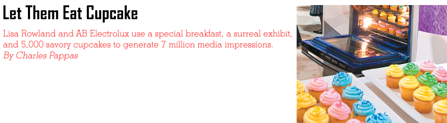 The Icing on the Cake The delicious taste left in visitors' mouths came from more than just the 5,000 cupcakes Electrolux distributed to roughly 11 percent of the show's attendees. An in-booth survey conducted during the show found 92 percent of visitors left the exhibit with an equally favorable or increasingly favorable opinion of the company, surpassing Rowland's goal of 75 percent. Additionally, 76 percent of attendees reported they would "definitely recommend" Electrolux to their customers. But those numbers paled next to the company's main goal of generating 5 million media impressions, defined as the total number who see, read, or hear a particular media item. Over the course of the show, Electrolux gave 80 interviews to the media, which were drawn to the booth by the bouquet of baking, the word of mouth about the new appliances, and the tie-in to the familiar ad campaign. The exhibit generated an astounding 7 million impressions - 40 percent above its objective - with coverage from the Chicago Tribune, AdWeek.com, and HeraldTribune.com, as well as two related show Web sites, KBISLive.com and KBISShowDaily.com. The media weren't the only ones who were bowled over by Rowland's trifecta of dessert, demos, and design. "I loved how Lisa incorporated a visually stimulating environment with product demonstrations," said one All-Star Awards judge. "She excited the senses with taste, touch, smell, and a very stimulating environment - and her results prove the strategy was very effective." But just like a great pastry chef whipping up an award-winning recipe, Rowland made it look like a piece of cake. e | ||