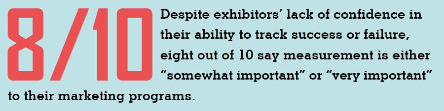 Still, despite exhibitors' lack of confidence in their ability to track success or failure, eight out of 10 say measurement is either "somewhat important" or "very important" to their programs. Considering that – and the fact that more than 40 percent of respondents say they have successfully used metrics to obtain a budget increase, prevent budget cuts, and demonstrate their programs' value – it's clear that measurement is a must. Read on to see how your program compares to your peers' and whether your approach to tracking and reporting metrics measures up.